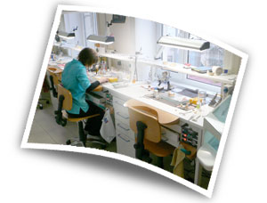- Un laboratoire intégré avec six prothésistes permanents, n’utilisant que ce qui fait de mieux dans le choix des matériaux. Le fait d’avoir notre propre laboratoire sur place, supervisé directement par les praticiens de la clinique, nous assure une rapidité de fabrication inégalable (nous réalisons la fabrication et la pose de couronnes ou facettes céramiques en quatre jours) et un contrôle total du début à la fin sur la qualité des travaux réalisés et des matériaux utilisés (notre laboratoire n’utilise pour la fabrication de ses céramiques que des matériaux d’origine allemande, suisse ou autrichienne).